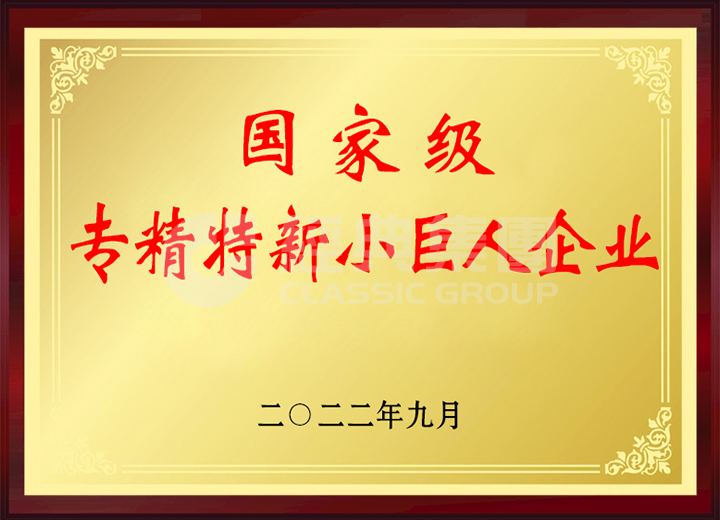經典集團入選第四批國家級專精特新小巨人企業。