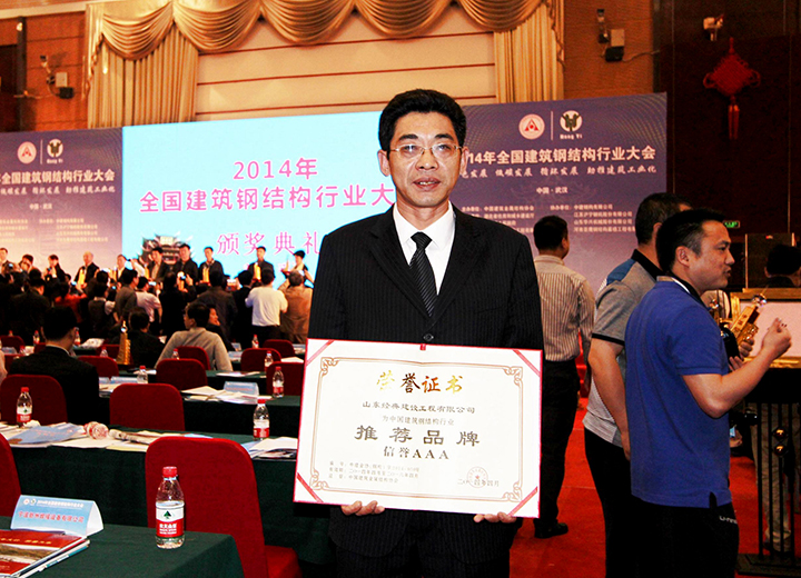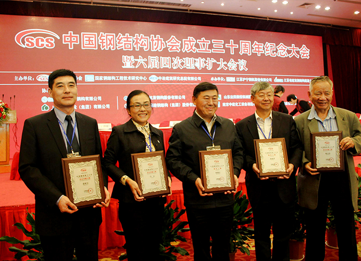 參加中國鋼結構協會成立三十周年紀念大會當選常務理事單位,榮獲首批全國鋼結構行業AAA級信用企業、中國鋼結構行業杰出貢獻人物、2014年度鋼結構杰出人才獎。