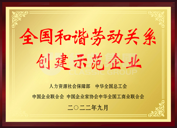 經典集團入選全國和諧勞動關系創建示范企業。