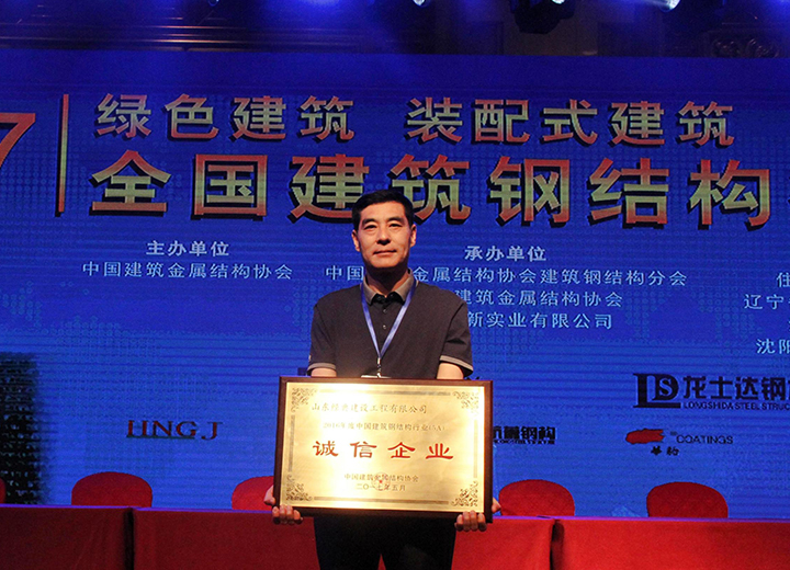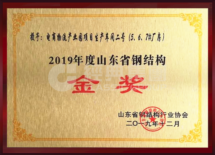 公司榮獲山東省鋼結構金獎、明星企業、優秀企業家、優秀項目經理等獎項。