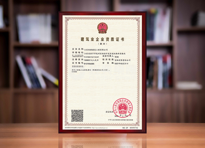 山東經典建設工程有限公司榮升建筑工程施工總承包壹級資質。
