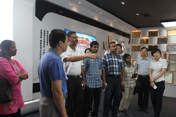 亞洲國家行業(yè)商會領(lǐng)導(dǎo)一行參觀了經(jīng)典集團(tuán)文化中心、項目管理中心、綜合辦公室、營銷中心和鋼結(jié)構(gòu)制造生產(chǎn)車間,杜福生總經(jīng)理介紹了經(jīng)典集團(tuán)生產(chǎn)經(jīng)營、技術(shù)創(chuàng)新、產(chǎn)學(xué)研合作、對外承攬工程等有關(guān)情況,并與外賓們親切交流。