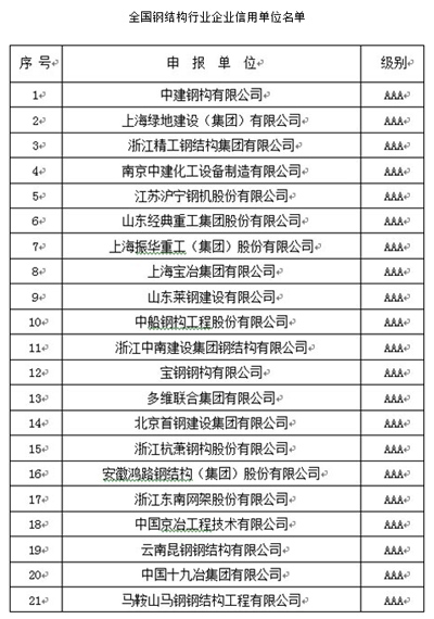 2014年10月26-27日,在南京國際會議中心隆重舉辦的中國鋼結構協會成立三十周年紀念大會暨六屆四次理事會擴大會議上,山東經典重工集團股份有限公司獲得首批全國鋼結構行業AAA級信用企業。