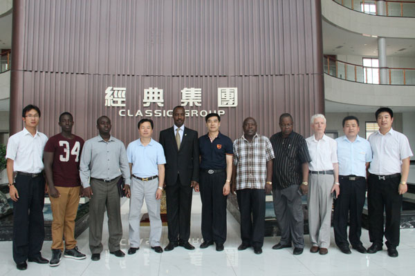 7月15日--17日由中國信息協(xié)會民營企業(yè)分會組織,盧旺達駐華使館查爾斯大使作為非洲經(jīng)貿(mào)考察團團長率領(lǐng)烏干達駐華大使、南蘇丹駐華公使、阿爾巴尼亞駐華大使以及盧旺達駐華商務參贊到經(jīng)典集團洽談業(yè)務合作。中國信息協(xié)會民營企業(yè)分會會長張鋁,國際部部長關(guān)偉娜,中國駐湯加王國前大使孫增森,經(jīng)典集團董事長苗樹文,總經(jīng)理杜福生及有關(guān)人員等陪同了此次活動。