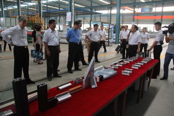 在觀摩會現場,與會領導首先聽取了劉董事長關于企業發展情況的匯報,隨后深入公司年產10萬噸高端鋁型材的生產車間,并現場聽取了項目負責人的情 況介紹。通過實地觀摩和聽取匯報,觀摩團領導對我公司能夠按照科學發展觀和區委區政府關于跨越發展的總要求,堅持解放思想,抓住機遇,高點定位,高點建設,開拓進取,攻堅破難,加快發展的做法給予充分肯定,并對我公司生產經營所取得的成績給予高度評價和贊賞。