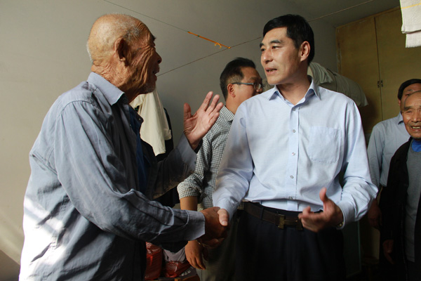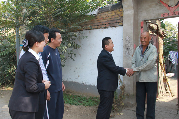 集團公司董事長苗樹文到興隆莊鎮敬老院,與老人親切交談