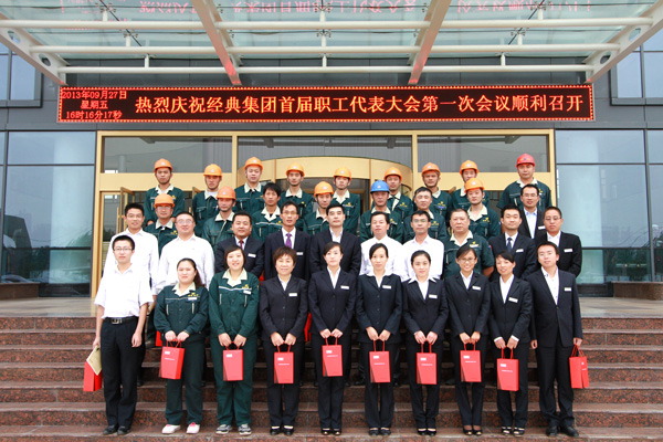 9月27日經典集團首屆職工代表大會第一次會議在集團會議中心召開,集團公司董事長苗樹文,總經理杜福生,工會主席高建國等工會領導及車間后勤職工代表35人參加了會議。