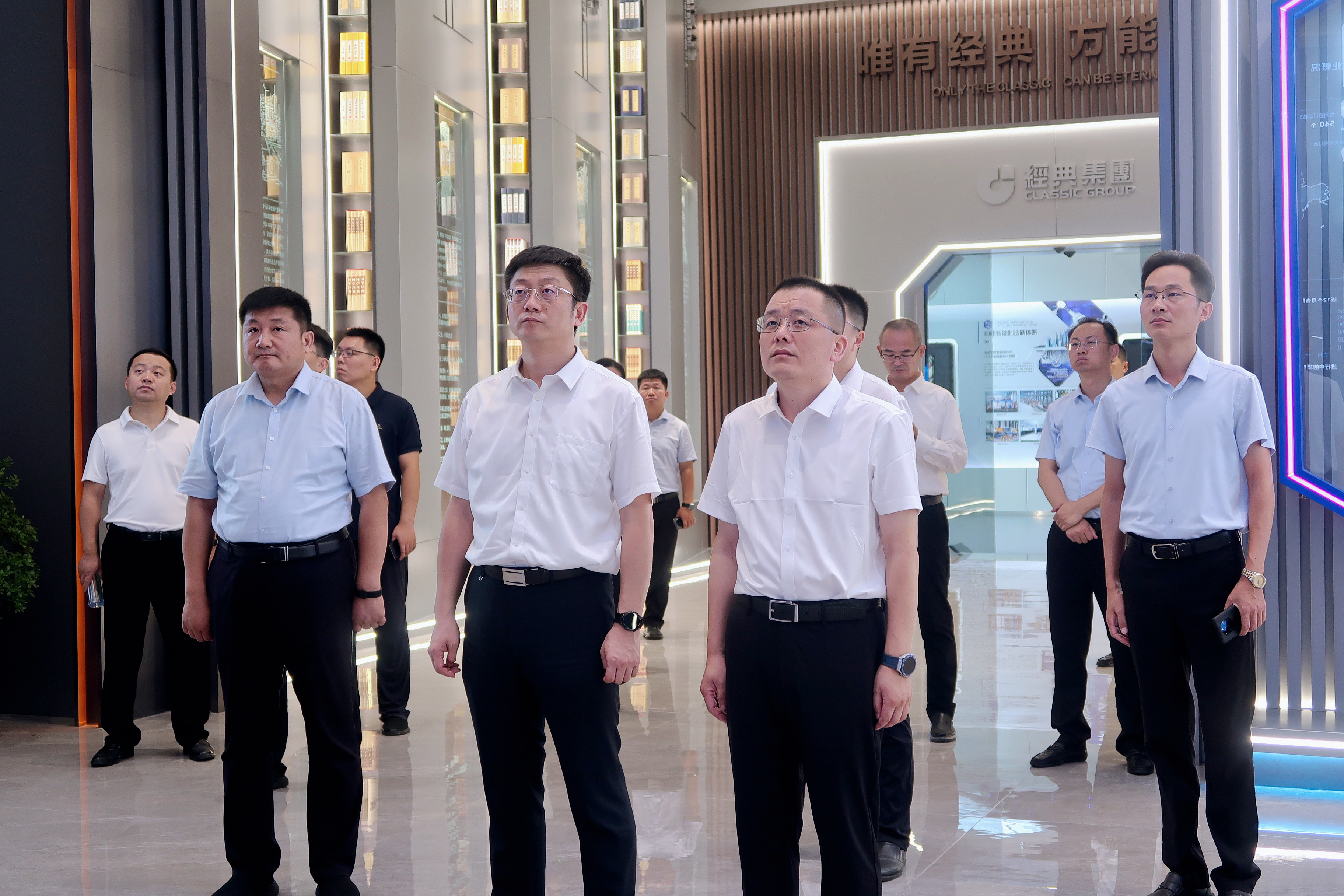 王慶書記一行來到集團展廳察看工業數字化信息平臺建設情況,詳細了解了數字生產、數字設備、數字孿生以及產業數字化發展等情況,對經典集團數字化轉型的先進做法和取得成效給予了充分肯定。他強調,要繼續保持創新發展的良好勢頭,加快推進數字化轉型,不斷深化數字賦能工業發展,探索更多新技術、新應用、新模式,進一步提升企業的智能化水平和核心競爭力。
