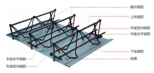 回答:由于鋼筋桁架模板長度的限制,不能通長布置,在梁上兩塊模板拼接處,須按一定構造及設計要求布置短鋼筋,將兩塊模板上的桁架鋼筋綁扎連接起來,以達到桁架鋼筋在使用階段的受力作用。