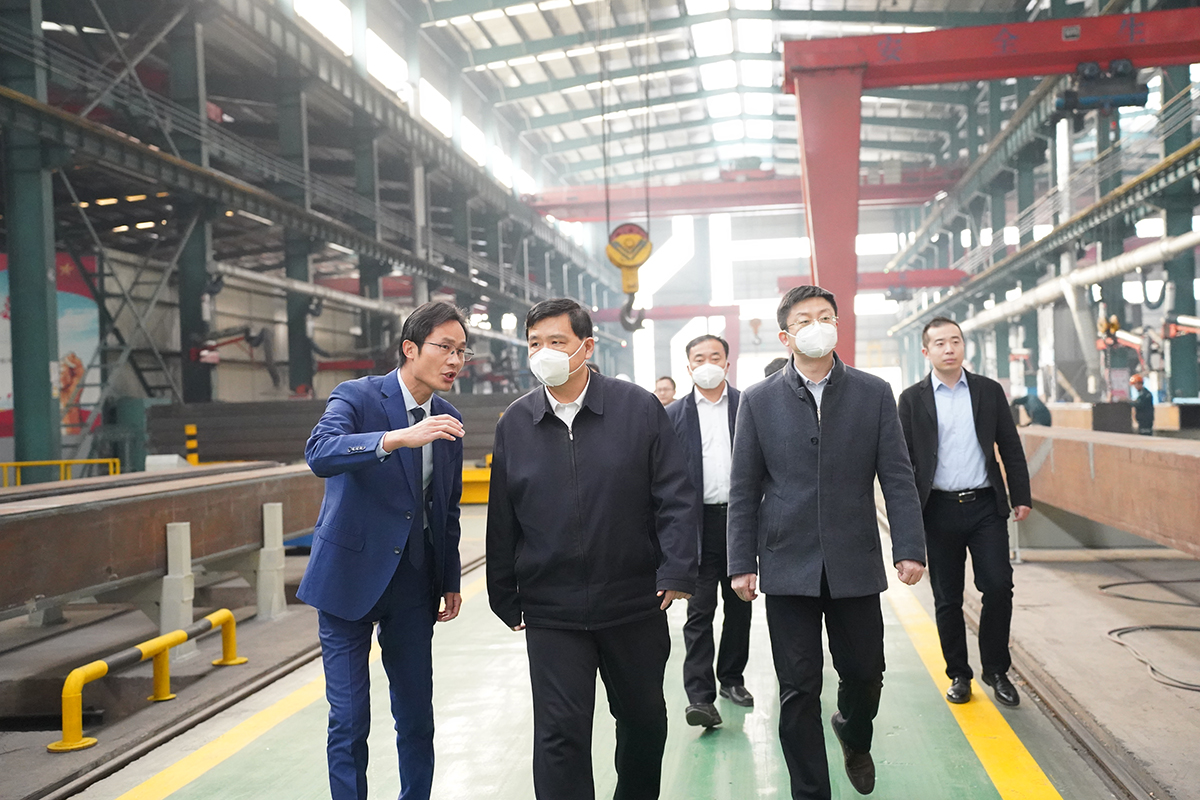 1月27日上午,濟寧市兗州區委副書記、區長王營和區委常委、副區長張銳一行實地調研經典集團高端裝配式建筑集成房屋項目建設情況。