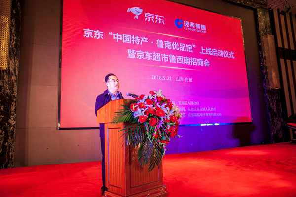 5月22日上午,京東“中國特產·魯南優品館”上線啟動儀式暨京東超市魯西南招商會在兗州成功舉辦。濟寧市兗州區委書記王宏偉、濟寧市商務局局長閆百川、京東集團山東大區市場總監王清波、山東經典集團董事長苗樹文分別在儀式上致辭。