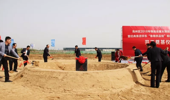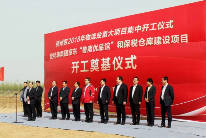 4月11日上午,經(jīng)典集團(tuán)京東“中國特產(chǎn)·魯南優(yōu)品館”和綜合保稅倉庫建設(shè)項(xiàng)目奠基開工。京東集團(tuán)魯西南區(qū)域總經(jīng)理魏超,兗州區(qū)委書記王宏偉,區(qū)人大常委會(huì)主任于立武,區(qū)政協(xié)主席劉英會(huì),區(qū)委常委、副區(qū)長唐軍,區(qū)委常委、區(qū)委辦公室主任屈耀武,區(qū)人大常委會(huì)副主任邱培友,區(qū)政協(xié)副主席戴憲亭,兗州工業(yè)園區(qū)黨工委副書記、管委會(huì)主任龔標(biāo)等領(lǐng)導(dǎo)出席開工奠基儀式。